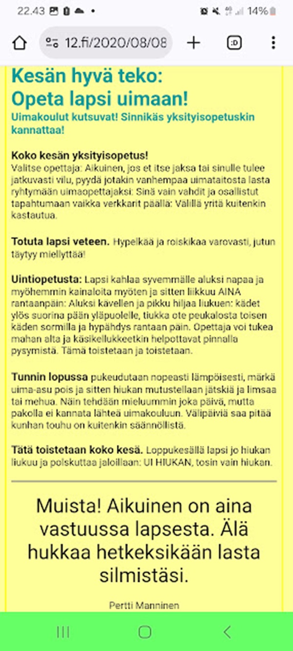 Kesän hyvä teko: Opeta lapsi uimaan! |