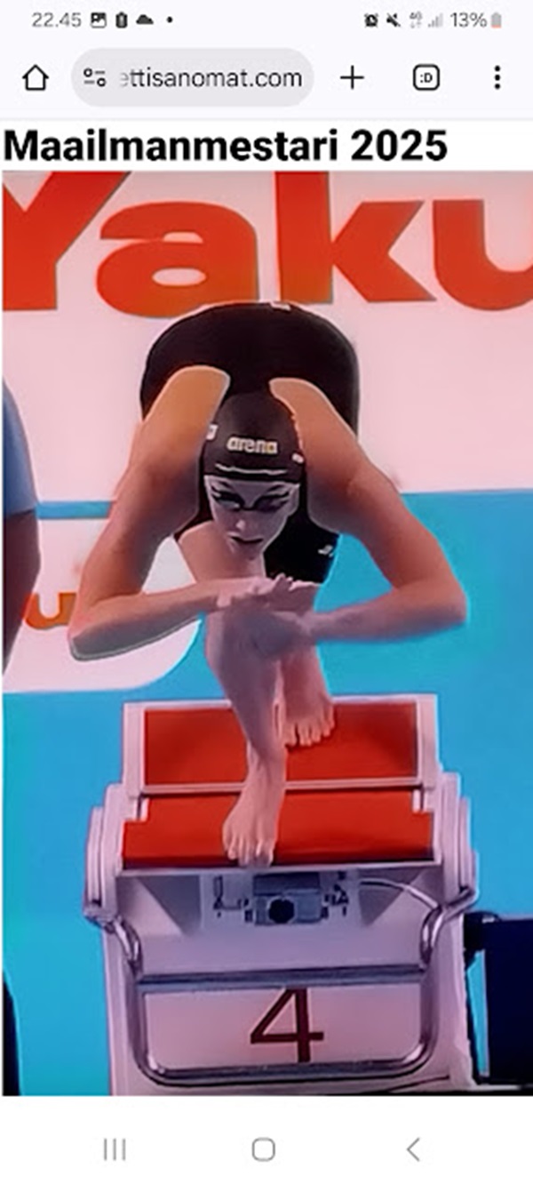 Valitse opettaja: Aikuinen, jos et itse jaksa tai sinulle tulee jatkuvasti vilu, pyydä jotakin vanhempaa uimataitosta lasta ryhtymään uimaopettajaksi: Sinä vain vahdit ja osallistut tapahtumaan vaikka verkkarit päällä: Välillä yritä kuitenkin kastautua. Totuta lapsi veteen. Hypelkää ja roiskikaa varovasti, jutun täytyy miellyttää! Uintiopetusta: Lapsi kahlaa syvemmälle aluksi napaa ja myöhemmin kainaloita myöten ja sitten liikkuu AINA rantaanpäin: Aluksi kävellen ja pikku hiljaa liukuen: kädet ylös suorina pään yläpuolelle, tiukka ote peukalosta toisen käden sormilla ja hypähdys rantaan päin. Opettaja voi tukea mahan alta ja käsikellukkeetkin helpottavat pinnalla pysymistä. Tämä toistetaan ja toistetaan. Tunnin lopussa pukeudutaan nopeasti lämpöisesti, märkä uima-asu pois ja sitten hiukan mutustellaan jätskiä ja limsaa tai mehua. Näin tehdään mieluummin joka päivä, mutta pakolla ei kannata lähteä uimakouluun. Välipäiviä saa pitää kunhan touhu on kuitenkin säännöllistä. Tätä toistetaan koko kesä. Loppukesällä lapsi jo hiukan liukuu ja polskuttaa jaloillaan: UI HIUKAN, tosin vain hiukan. Muista! Aikuinen on aina vastuussa lapsesta. Älä hukkaa hetkeksikään lasta silmistäsi. Pertti Manninen Käsivarsikellukkeet ovat hyvä apu uimaopetuksessa. Krokotiili ja uimalaudat sopivat potkuharjoitteluun. Uimarengas on parasta antaa jo uimataitoisen lapsen leikkeihin, koska se voi kipata, lähteä tuulessa karkuun, eikä siin uima-asento ole oikea. Tämä juttu julkaistu vuosi sitten nettisanomat.com:issa 08.06.00. |