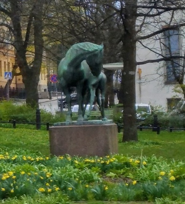 ![]() "Äidin rakkaus." Varsapuistikko (ruots. Fölskvär) sijaitsee Helsingissä Kaisaniemenkadun, Yrjö-Koskisen kadun ja Unioninkadun väliin jäävässä kolmiossa Metsätalon tuntumassa. Puisto on saanut nimensä siellä sijaitsevasta 1928 valmistuneesta Emil Cedercreutzin veistoksesta Äidinrakkaus, joka kuvaa hevosen varsaa ja sen emää. Torstaina 8.5.2025 12:18 matkalla Malmin hautausmaalle ruusujen kera. Kuvat Pertti Manninen. ![]() |