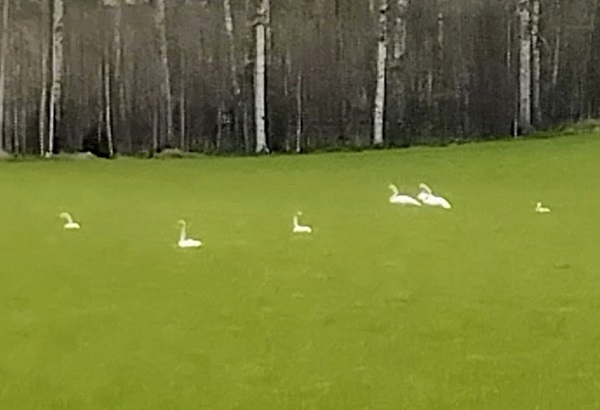 Joutsenten lepohetki. Uusimaa. Kirkkonummi. Lapinkylä. Perjantai 9.5.2025 12:27. Kuva Pertti Manninen. |