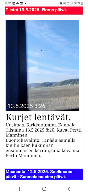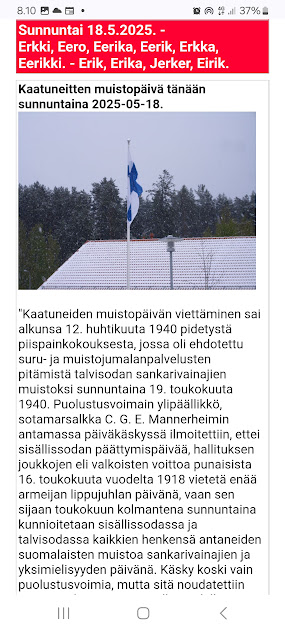 | Maanantai 12.5.2025. Snellmanin päivä - Suomalaisuuden päivä. |