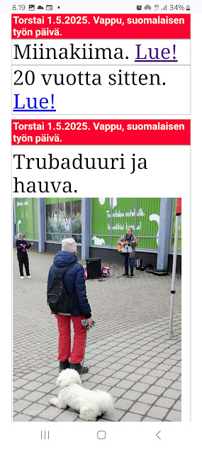 | Torstai 1.5.2025. Vappu, suomalaisen työn päivä. |