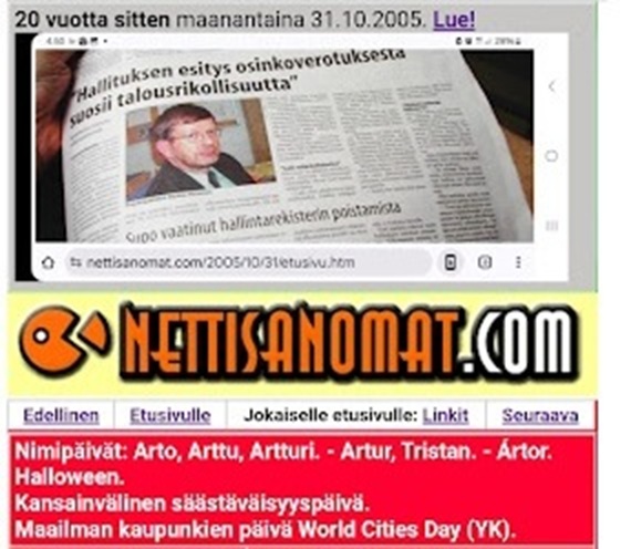 https://www.nettisanomat.com/2005/09/19/etusivu.htm https://www.nettisanomat.com/2005/09/19/etusivu.htm#toinenkuva https://www.nettisanomat.com/2005/09/20/etusivu.htm https://www.nettisanomat.com/2005/09/20/etusivu.htm#toinenkuva |
