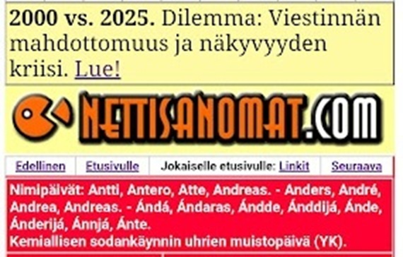 | Vuosi 2025. kuukauden alku - keski - loppu 45 etusivua ja linkit. |