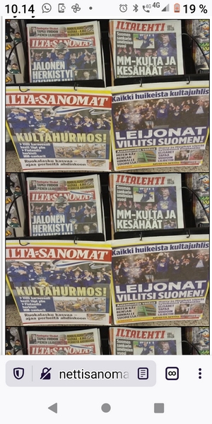 Kuvat maanantaina 23.5.2022. 2022/05/23 N:o 2520 - Tässä lähetyksessä: Lähetys jatkuu palohälytyksen selvittyä. Yle Tv1. Maanantai 23.5.2022 21:27. 2022/05/23 N:o 2520 - Tästä ei kerrota suomalaisille. Suomesta tulossa ydinasevaltio, joka sitoutuu NATO:n ydinasedoktriiniin: First Use-doktriinin mukaan ydinaseita voidaan käyttää sellaisia maita vastaan, jotka eivät ole hyökänneet liittolaismaahan tai, joilla itsellään ei ole ydinaseita. 2022/05/23 N:o 2520 - SYYSKUU 2016. ORAVA TAMMESSA. Kuvat tiistaina 24.5.2022. 2022/05/24 N:o 2521 - Kevään ensimmäinen? Paidaton lukija. Uusimaa. Kirkkonummi. Keskusta. Uimahalli. Penkki. Tiistai 24.5.2022 11:24. Pertti Manninen. "Studio Salotto. Parturi Kampaamo & Kauneuspalvelut. Avoinna sopimuksen mukaan." 2022/05/24 N:o 2521 - Ilta-Sanomat: Turkissa leviää nyt outoja valheita Suomesta. Iltalehti: Hurja vihanpurkaus Putinille. Ilta-Sanomat: Kollegat ylistävät konkaripoliitikkoa, Ilkka Suominen kuoli. 1939-2022, Iltalehti: Konkaripoliitikko on poissa. 1939-2022. Ystävät muistelevat Ilkka Suomista. 2022/05/24 N:o 2521 - Turkin presidentti Recep Tayyip Erdoğan sotki Suomen ja Ruotsin Nato-juhlat - ainakin väliaikaisesti. Iltalehti. Perjantai 20.5.2022. 2022/05/24 N:o 2521 - Tästä ei kerrota suomalaisille. Suomesta tulossa ydinasevaltio, joka sitoutuu NATO:n ydinasedoktriiniin: First Use-doktriinin mukaan ydinaseita voidaan käyttää sellaisia maita vastaan, jotka eivät ole hyökänneet liittolaismaahan tai, joilla itsellään ei ole ydinaseita. 2022/05/24 N:o 2521 - SYYSKUU 2016. ORAVA TAMMESSA. Kuvat keskiviikkona 25.5.2022. 2022/05/25 N:o 2522 - Kuvat. Laatua. Solifer aamulla Rustan edessä Kirkkonummella. Tiistai 24.5.2022 10:07. 2022/05/25 N:o 2522 - Kevään ensimmäinen? Paidaton lukija. Uusimaa. Kirkkonummi. Keskusta. Uimahalli. Penkki. Tiistai 24.5.2022 11:24. Pertti Manninen. "Studio Salotto. Parturi Kampaamo & Kauneuspalvelut. Avoinna sopimuksen mukaan." 2022/05/25 N:o 2522 - Ilta-Sanomat: Turkissa leviää nyt outoja valheita Suomesta. Iltalehti: Hurja vihanpurkaus Putinille. Ilta-Sanomat: Kollegat ylistävät konkaripoliitikkoa, Ilkka Suominen kuoli. 1939-2022, Iltalehti: Konkaripoliitikko on poissa. 1939-2022. Ystävät muistelevat Ilkka Suomista. 2022/05/25 N:o 2522 - Turkin presidentti Recep Tayyip Erdoğan sotki Suomen ja Ruotsin Nato-juhlat - ainakin väliaikaisesti. Iltalehti. Perjantai 20.5.2022. 2022/05/25 N:o 2522 - Tästä ei kerrota suomalaisille. Suomesta tulossa ydinasevaltio, joka sitoutuu NATO:n ydinasedoktriiniin: First Use-doktriinin mukaan ydinaseita voidaan käyttää sellaisia maita vastaan, jotka eivät ole hyökänneet liittolaismaahan tai, joilla itsellään ei ole ydinaseita. 2022/05/25 N:o 2522 - SYYSKUU 2016. ORAVA TAMMESSA. Kuvat torstaina 26.5.2022. 2022/05/26 N:o 2523 - Suomen pääministeri Sanna Marin (oik.) vierailemassa Irpinissä. Marinin vieressä vasemmalla Irpinin kaupunginvaltuuston edustaja. [Irpinin kaupunginvaltuusto]. 2022/05/26 N:o 2523 - Zelenskyi julkaisi kolme yhteiskuvaa Marinin kanssa. Suomen pääministeri Sanna Marin vierailemassa Irpinissä. Marin sodan runtelemassa Ukrainassa: ”Vaikea katsoa mitä Venäjä on tehnyt”. 2022/05/26 N:o 2523 - Lavrov varoitti länttä asetoimituksista Ukrainalle. Ilta-Sanomat. 2022/05/26 N:o 2523 - Erdogan saattaa valmistella kuoliniskua Rojavan kurdialueelle Syyriassa. Helsingin Sanomat. 2022/05/18 N:o 2515 - Tästä ei kerrota suomalaisille. Suomesta tulossa ydinasevaltio, joka sitoutuu NATO:n ydinasedoktriiniin: First Use-doktriinin mukaan ydinaseita voidaan käyttää sellaisia maita vastaan, jotka eivät ole hyökänneet liittolaismaahan tai, joilla itsellään ei ole ydinaseita. 2022/05/26 N:o 2523 - SYYSKUU 2016. ORAVA TAMMESSA. Kuvat perjantaina 27.5.2022. 2022/05/27 N:o 2524 - Lenin sai kyytiä Turusta. Minna Arve (kok) ja Petteri Orpo. - Leninin patsaan poistajat. 2022/05/27 N:o 2524 - Suomen pääministeri Sanna Marin (oik.) vierailemassa Irpinissä. Marinin vieressä vasemmalla Irpinin kaupunginvaltuuston edustaja. [Irpinin kaupunginvaltuusto]. 2022/05/27 N:o 2524 - Lavrov varoitti länttä asetoimituksista Ukrainalle. Ilta-Sanomat. 2022/05/27 N:o 2524 - Erdogan saattaa valmistella kuoliniskua Rojavan kurdialueelle Syyriassa. Helsingin Sanomat. 2022/05/27 N:o 2524 - Tämä se tekee rauhan... ydinaserauhan sateenvarjo! (Tapio. Kirkkonummen Sanomat). 2022/05/27 N:o 2524 - Tästä ei kerrota suomalaisille. Suomesta tulossa ydinasevaltio, joka sitoutuu NATO:n ydinasedoktriiniin: First Use-doktriinin mukaan ydinaseita voidaan käyttää sellaisia maita vastaan, jotka eivät ole hyökänneet liittolaismaahan tai, joilla itsellään ei ole ydinaseita. 2022/05/27 N:o 2524 - SYYSKUU 2016. ORAVA TAMMESSA. Kuvat lauantaina 28.5.2022